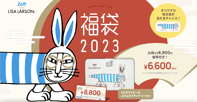 去年都只介紹食物,今年私心推薦日本平價眼鏡品牌Zoff的眼鏡福袋!有跟瑞典陶藝家Lisa Larson聯名就很想敗下去。購買福袋者還有機會抽選限量500個的90公分長兔裝MIKEY貓抱枕!!光商品券的價格就超越了福袋價格,有夠買眼鏡需求的朋友們或許可以考慮一下喔!